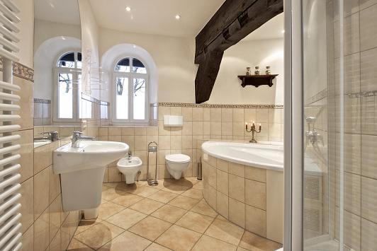 Bad mit Wanne, Dusche, Bidet und Toilette
